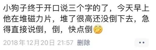 由于我们是“新移民”,在这边不认识什么人,家里就我和爸爸两个人带孩子,导致他平时与别人交流少,说话晚,长一点的句子要啊啊啊很久才能说完整。