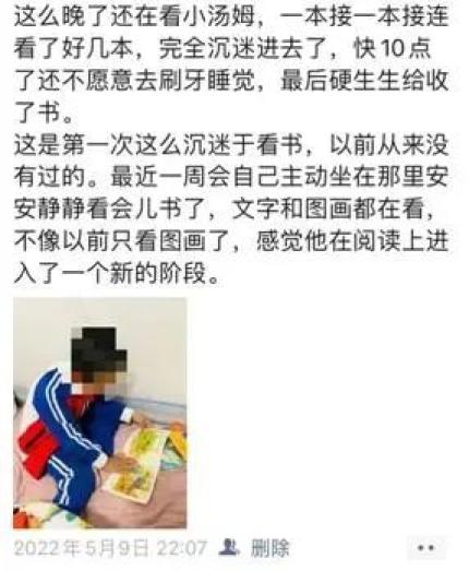 每天的亲子阅读时间也能让父母放下手机陪伴孩子,同时孩子专注力也得到了训练。