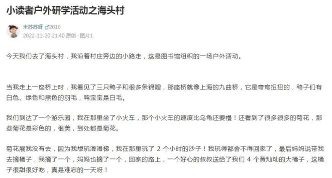 由于缺乏课外阅读,语文这个学科一直处于中下游水平,尤其是写作,每次头秃,凑字数都困难,我就不想孩子再像我那样,趁现在幼儿园有时间多多做阅读积累。