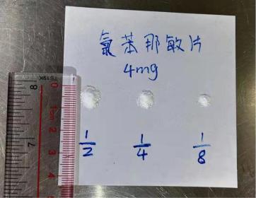 图3 举例:马来酸氯苯那敏片分剂量标准对照表(仅供参考)4、片剂磨粉后临时调配成液体制剂