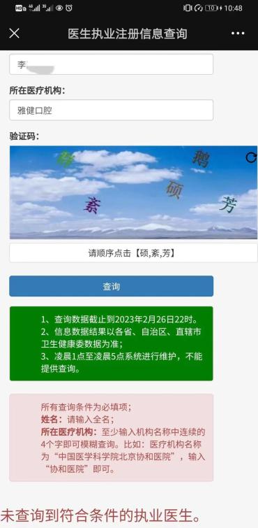 后来,尚女士用李医生真实姓名再次查询,同样没有《医师执业证书》。
