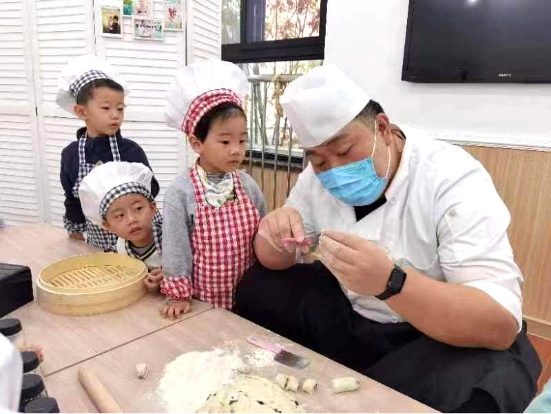 现在,阮浩除了每天在后厨里忙碌,在厨艺上拓宽视野、提高技能外还加入了童的梦园内食育课题组,在科学育儿、营养膳食的搭配上潜心研究。他努力试着从儿童视角出发,和保健老师们共同设计园本化的食育活动,顺应儿童的年龄特点,尊重儿童的个体差异。