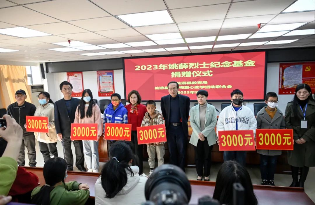 第二站是仙游。公公的籍贯写的都是“福建省仙游县”。8年来我们通过仙游县教育局和“曾德梅爱心助学活动联合会”的协助,每年发放“姚薛烈士助学金”给55名家境困难的孩子,每人3000元助学金。这次又可以亲自来到现场颁发,见到孩子们总是有着衷心的喜悦。来闽前夕收到“曾德梅爱心助学活动联合会”郑会长提供的孩子家境背景的报告,令我彻夜难眠:还有那么多有困难的人家啊!公公婆婆就义之后就成为孤儿的人望,决定捐出更多基金来资助家乡的孤儿,于是在会上宣布除了每年的固定助学金额之外,再追加100万元。我们总是说:捐款不难,最难的是要把善款放到需要的人手中,那才是繁复辛苦的工作。感谢“曾德梅爱心助学活动联合会”和仙游县教育局,不辞辛劳地做调查、家访,选择需要帮助的学生,年复一年地提供助学金名单,一分不差地发放到学生手中。