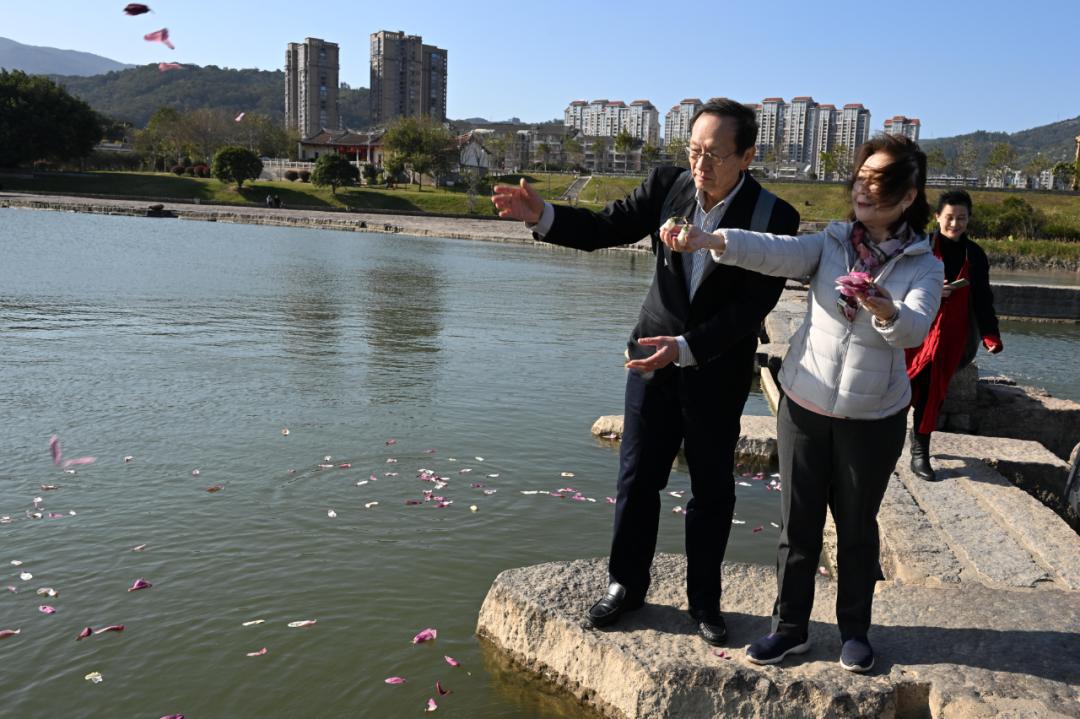 薛人望李黎夫妇泛舟木兰溪最大的支流——延寿溪来到公公临终时还念兹在兹的木兰溪,我们在木兰陂上挥洒木兰花瓣——美丽的木兰花,美丽的母亲河木兰溪,微风把花瓣吹着,冉冉落在溪水上,漂向远方。自从写出《白鸽木兰》这本书,每当看到木兰花我就会想着那位美丽而坚强的女子——我从未见过面的婆婆,然而我对她是那样的熟悉,回到她的故乡更是感觉她长伴左右,我的思念随着花瓣、溪水和清风,流向远方,吹向天边……