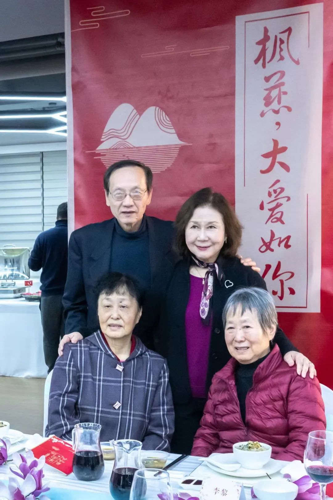 热心的主人,还特别在湄洲日报社举办了一场温馨的恳谈会,让我们有机会与乡亲们会面交谈,把盏言欢,品尝家乡小吃:妈祖面、兴化米粉、荔枝肉、枫亭糕、海蛎饼……桌上精致的餐具旁点缀着朵朵木兰花,墙上挂着“枫慈,大爱如你”的海报,和公公手书遗言“木兰溪水长久在流,白鸽岭高壮地站立,乡亲至爱之恩亦不能忘”的放大字样。此刻我们更是深深感念张元凯医师和夫人吴珍玉女士这对公公婆婆的乡亲至交——是他们在公公婆婆身陷囹圄的4年多里照顾孩子们,甚且在公公婆婆就义之后冒着危及身家之险收养孤儿,这真是义薄云天之举!遗憾的是两位都已远赴天国,堪慰的是恩人的两位女儿张美萍、张美榕女士当晚也在场。抬头看着公公“乡亲至爱之恩亦不能忘”的字迹,举目周遭的欢声笑语,体会了“乡亲至爱”是怎样的一种暖心的情爱!