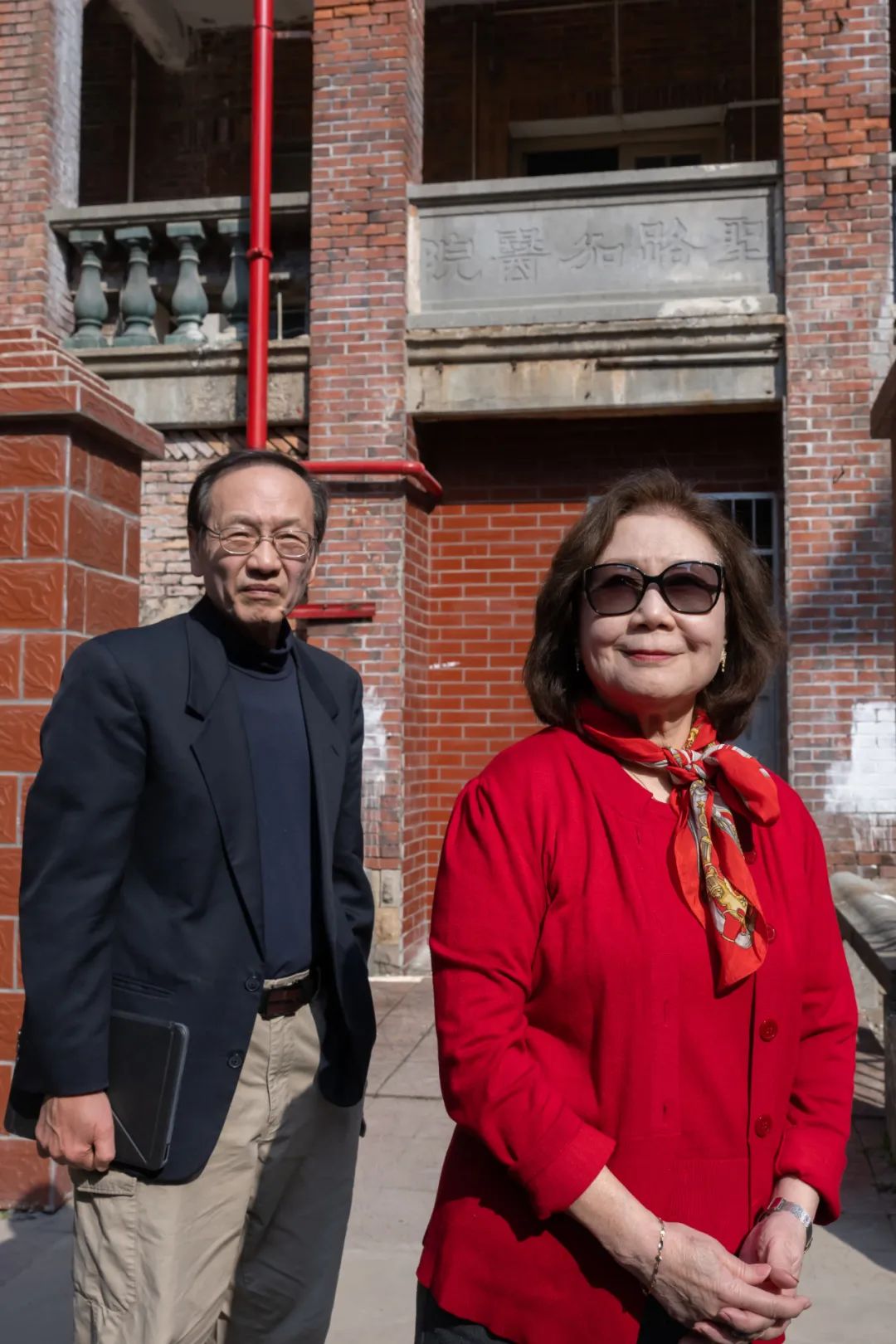 薛人望李黎夫妇参观莆田学院附属医院的前身圣路加医院50年前到美国不久就听到《我的祖国》这首歌,非常喜欢。此时第三段歌词“好山好水好地方”又在我脑海中响起。这里也真是好山好水好地方,但山水纵然再好,最重要的还是“人”;公公遗言提到家乡的山、家乡的水,但“乡亲至爱之恩”更是永不能忘的。公公婆婆在1963年1月31日牺牲,至今整整60年了——一甲子!当年15岁的孤儿,如今跋涉漫漫长途回来,见到家乡惊人的进步变化,体会到不变的乡情亲情。家乡,用温暖又有力的臂膀迎接他,拥抱他。
