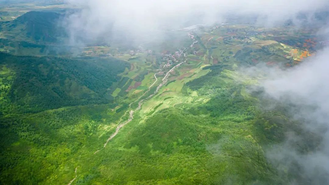 渭源村庄航拍鸟鼠山是黄河最大支流渭河的发源地,位于渭源城西南,属西秦岭北支。历史上,这里是中原通往西域的边塞要地,亦是丝绸之路的必经之地。