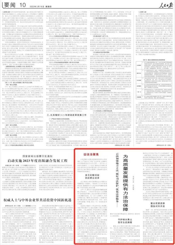 原标题:《《人民日报》要闻版点赞云南为高质量发展提供有力法治保障!》
