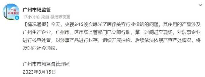 美容针成毁容针?广州市监局:正在处理