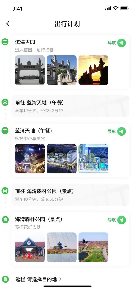 上海市民王先生和亲戚约好清明一起去位于市郊的滨海古园为长辈祭扫,并在祭扫后和家人至附近踏青。为此,他提前通过“随申行”查询从出发地到滨海古园的联程信息,及祭扫墓园的接驳车班次和票价,并通过“随申行”专区获取主要墓园的周边踏青路线联程服务。一份“出行计划”包含墓园祭扫、周边餐饮以及踏青景点,使得原本繁琐的信息清晰起来,MaaS智能行程规划为出行提供便捷的同时,还能推荐最优的行程方案。