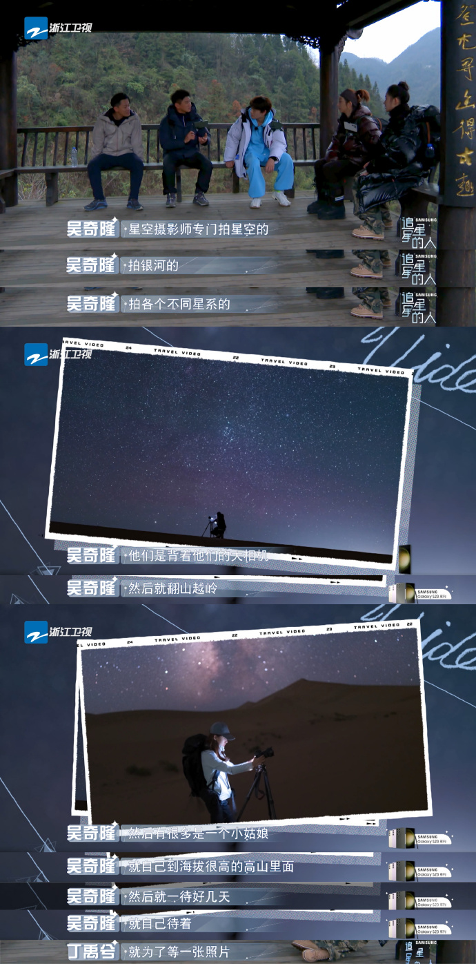 作为完整参加三季《追星星的人》的吴奇隆表示,之前的节目也有各种不同的挑战,但这一次的确是体能上最辛苦的。不过他也借助“星空摄影师”的故事鼓励大家,“星空摄影师翻山越岭,就为了一张照片,有些时候你并不知道自己的极限是什么,因为你从来没有去尝试挑战自己的极限。”