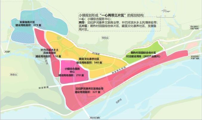 达孜叶巴康养小镇建设项目方案总平图据介绍,达孜叶巴康养小镇建设项目规划面积约4700亩,总建设用地1207.16亩,总建筑面积75万平米。将打造“一心(小镇综合服务中心)、两带(拉萨河康养文旅商业带、叶巴河滨水乡土风情体验带)、三片区(藏医文化康养社区、朗热村田园综合体片区、民生功能支持片区)。