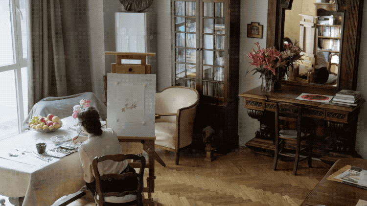 ▲尤勇记录下一年四季,母亲在花丛中画画