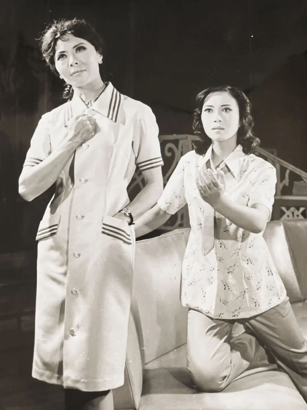 ▲1981年话剧《危险的旅行》中的吴彦姝(左)