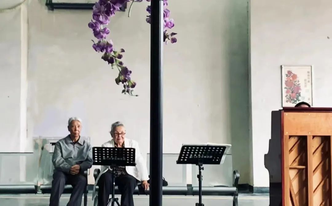 ▲郑小瑛和老伴在排练场地