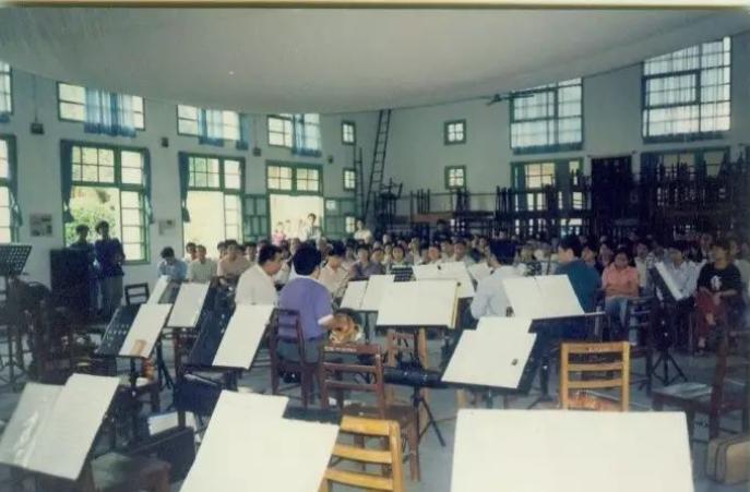 最初乐团排练厅在鼓浪屿经贸干校废弃校址上的礼堂,之后还借用过一个荷花歌舞厅,白天乐团排练,晚上是人们唱KTV的地方。