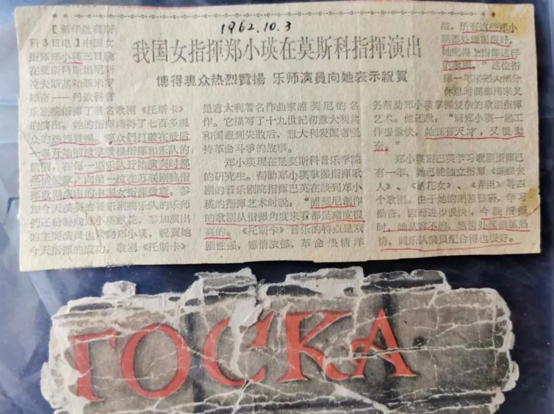郑小瑛也是第一个登上国外歌剧指挥台的中国人。那是1962年10月3日,她外派苏联进修歌剧交响乐指挥,在苏联国立莫斯科音乐剧院指挥了一场《托斯卡》。