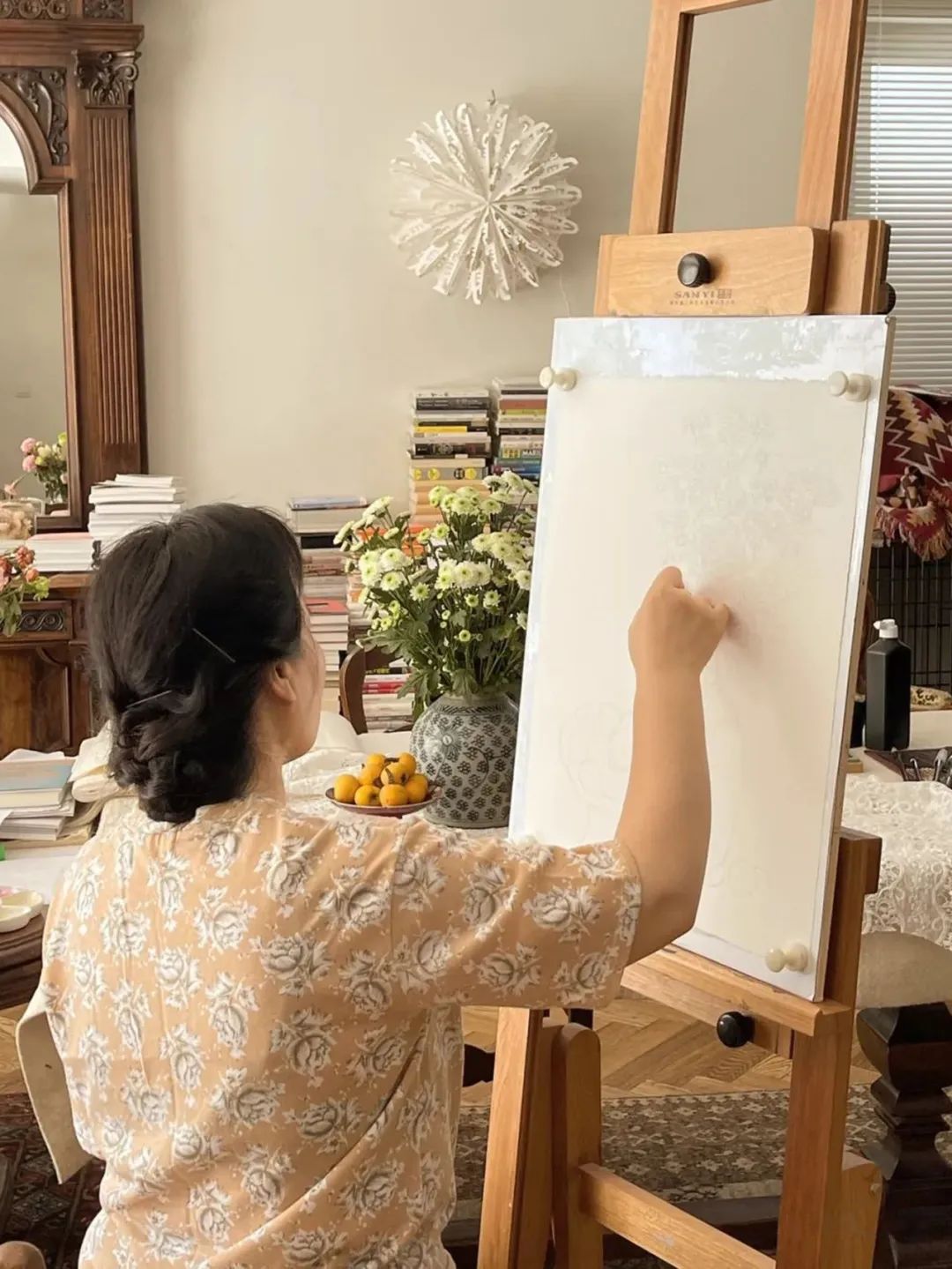 ▲爱琴在客厅画画