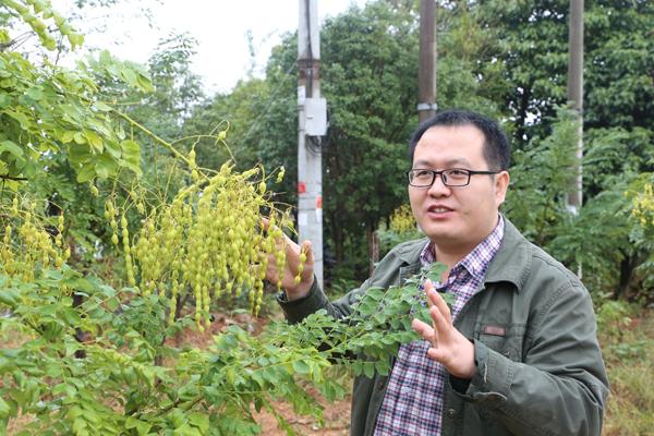 广西喀斯特地区石山生境独有着特殊的环境条件,在岩石的不同石面生长着不同的植被,这种石山衍生的奇特生物多样性深深吸引着史艳财,“就像野外探宝一样,揭开不同的宝藏,在给我们不断的惊喜,而且我们做野外研究少不了和农业、农民打交道,老百姓就很好奇你这个东西有什么用,能卖多少钱。”科研成果能够造福于民,是“把论文写在大地上”的科研人员最大的心愿。此刻,史艳财与团队最大的心愿就是如何将自己的研究成果实现转化,造福于民。明确了方向和研究目标,史艳财开始寻找方法,经过从许多树种中多方筛选,综合考量后因地制宜选择了金槐。结果如史艳财所想,金槐这种推广效果好的中药材很受欢迎,对农民增收起到了一定作用。阶段性的胜利让史艳财有了极大的成就感,他坚守初心,越做越深。
