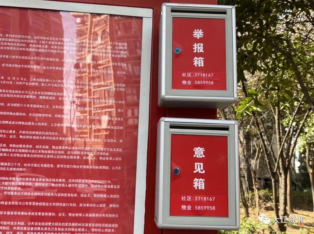 ▲融汇锦江CDEF区在公示栏旁设立了举报箱和意见箱。据介绍,自全市住宅小区物业大排查、大整治、大提升专项攻坚行动以来,全市1614个住宅小区实现了物业服务全覆盖,暖民心金牌物业行动知晓率达96%、满意度90.14%,物业费收缴率从2022年3月份的55%提高至76%,新成立720个业主委员会,业委会组建率从33%提高到95%,具备条件成立党组织的物业企业、居民小区已达应建尽建。目前,全市物业整治提升行动仍在持续推进中。