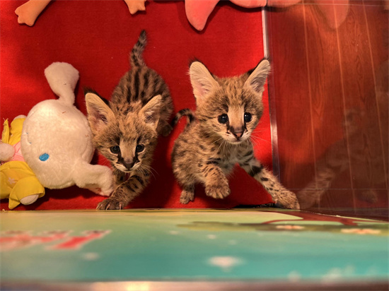 近日,在杭州野生动物世界,两只小薮猫摇摇晃晃地在育幼暖房里嬉戏。