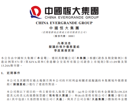 中国恒大披露境外债务重组方案,未来三年核心任务是“保交楼”