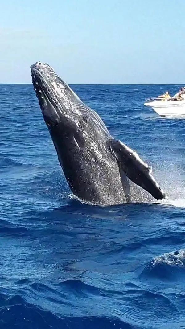 鲸鱼受到惊扰就会离开,而不被打扰的鲸鱼并不惧怕人类的船,自由自在地从船下游过,甚至许多次跃出水面。做自然的过客,才能看见更多的美。