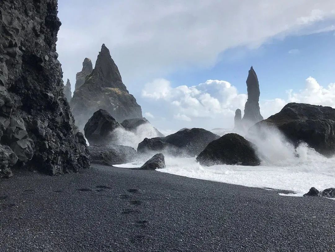 旁边的玄武岩柱是自然形成,还有许多神秘传说,《权力的游戏》也曾在这里取景,还有剧迷专程来打卡。不过风大浪大,容易丢东西和受伤,还有旅行者目睹车门被狂风扯开,提醒后来者们小心海风。