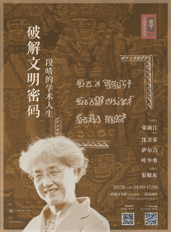 3月26日是段晴教授去世周年祭,“三联学术论坛”特别邀请段老师的生前挚友、学术伙伴荣新江、沈卫荣、渠敬东,以及亲传弟子萨尔吉、叶少勇,借由段晴教授如火一样燃烧的学术人生,探讨中国近代自陈寅恪、季羡林以降的学脉传承,回顾近年西域研究的突破与进展,拓开我们对人类文明的感知和理解。