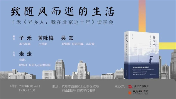 杭州|致随风而逝的生活——子禾《异乡人:我在北京这十年》读享会