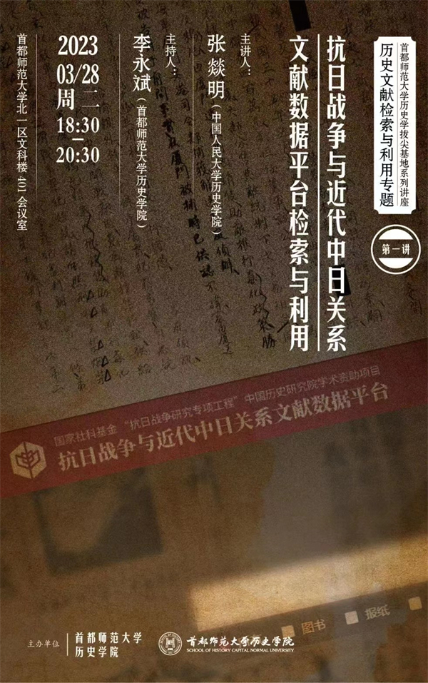 抗日战争与近代中日关系文献数据平台自上线以来,在学界中与社会上得到了广泛的关注,反响良好。3月28日晚,我们邀请中国人民大学历史学院的张燚明老师来教大家如何检索与利用这个文献数据库。