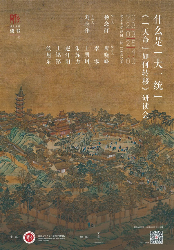王朝更迭绵延千年,历代帝王如何树立政治权威,获得承接“天命”的资格?历两汉宋明儒家阐释,清朝如何改造前朝“正统观”,重申“一统”之为首义?历史学家、中国人民大学杨念群教授历二十余年探索深耕,在最新专著《“天命”如何转移:清朝“大一统”观的形成与实践》中采用贯通性视角,试图以新锐政治史方法,对上述问题做出独特的分析与解释。本次“文研读书”活动,邀请多学科的学者,围绕本书做进一步的延伸讨论,以期进一步探析和争鸣“大一统”对中国历史及政治文化的影响。