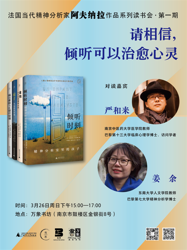 精神分析家怎么和孩子工作?《倾听时刻:精神分析室里的孩子》告诉我们,每一个孩子都是唯一,他们需要倾听与交流,他们的真实状况、隐私与欲望需要得到尊重,他们的生存困难需要得到理解与认识,要抓住那些和孩子工作的关键时刻。3月26日下午,《倾听时刻》译者将做客万象书坊,为我们带来文本审视之外的精神理疗。