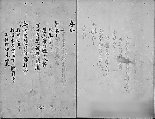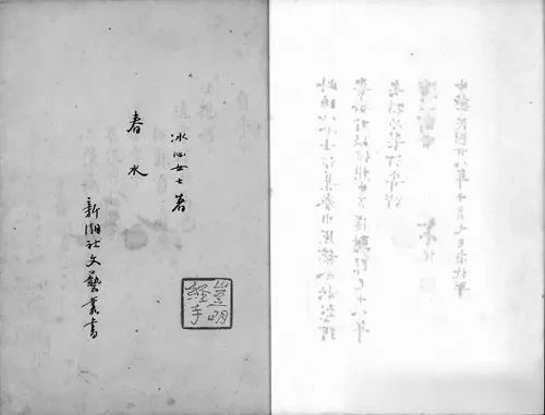 “可以再照一个影儿么”,表示《春水》承接了前一部诗的形式、情感与内容,只是写作的方式发生了一些变化,从1922年3月5日起笔、整理、写作,到6月14日完稿,前后100天,成小诗182首。《晨报副镌》从3月21日开始刊登,每日刊登几首,随来随登,没有便隔几天,让读者也等待,直至6月30日刊登最后的第182首,画上了圆满的句号。周作人主持春潮文学丛书时,决定将《春水》作为丛书的一种,冰心把发表过的《春水》诗稿重新抄录,交给周作人先生。2017年,《春水》手稿在日本完整发现。手稿大小尺寸为17.4厘米×13.0厘米,以毛笔小楷竖行双面书写于无格宣纸上,计有115页,线装成册。手稿字迹秀美娟丽、流畅雅致,保存完美。是目前已知的冰心手稿中,创作时间最早、保存最完整、规模最大的一种。这批手稿之前,尚未出现过冰心五四前后的任何手迹,这是一个破记录的发现,让我们可以感受到冰心作为一个女大学生笔下的文采与风采。手稿完成于1922年11月,1923年由新潮社出版,从严格的意义上说,属于抄录手稿而非原创手稿,与《去国》《繁星》等其他作品一样,《春水》原创手稿给了《晨报》副刊,排版之后,历经岁月沧海桑田而不知去向。