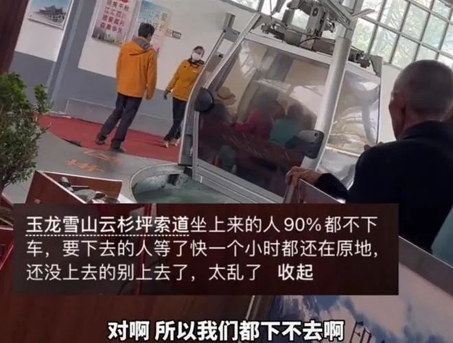 玉龙雪山多拨游客坐索道上山到站不下,景区回应据多家媒体报道,云南玉龙雪山景区内部分游客坐索道不下缆车,导致排队下山的游客无法乘坐,等了很长时间。3月25日,景区方回应称,有旅行团为赶行程,让游客坐索道往返游览风景,往后会进行劝阻,留出空吊箱。