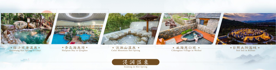 可以浸润温泉,在临沂观唐、青岛海泉湾放松身心,在威海慈口观、日照太阳客栈疗愈康养,在徂徕山西麓天然森林温泉共同仰望泰山巍峨,感受松涛阵阵,倾听鸟鸣声声。