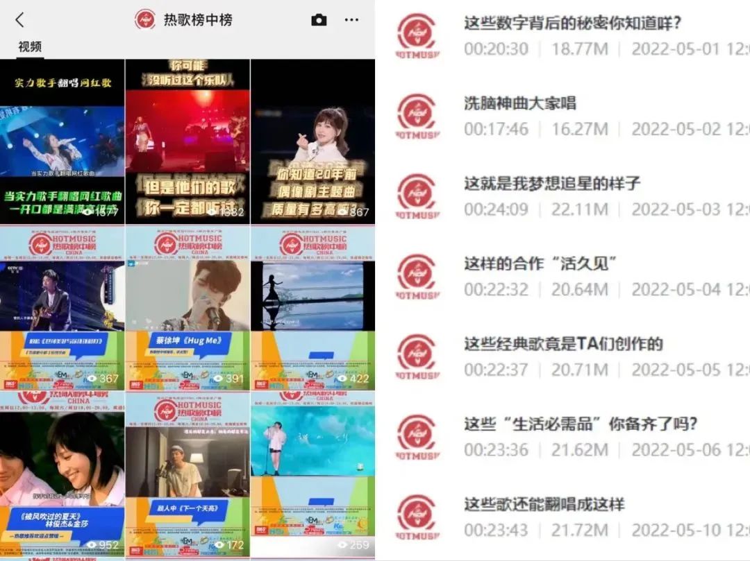打破传统广播节目壁垒,传播听众喜欢听且看得见的好音乐。每周制作2-3首“上榜好歌”视频上传至“热歌榜中榜”视频号,聚焦华语乐坛热点人物及热点事件,利用新媒体力量助推节目曝光度。