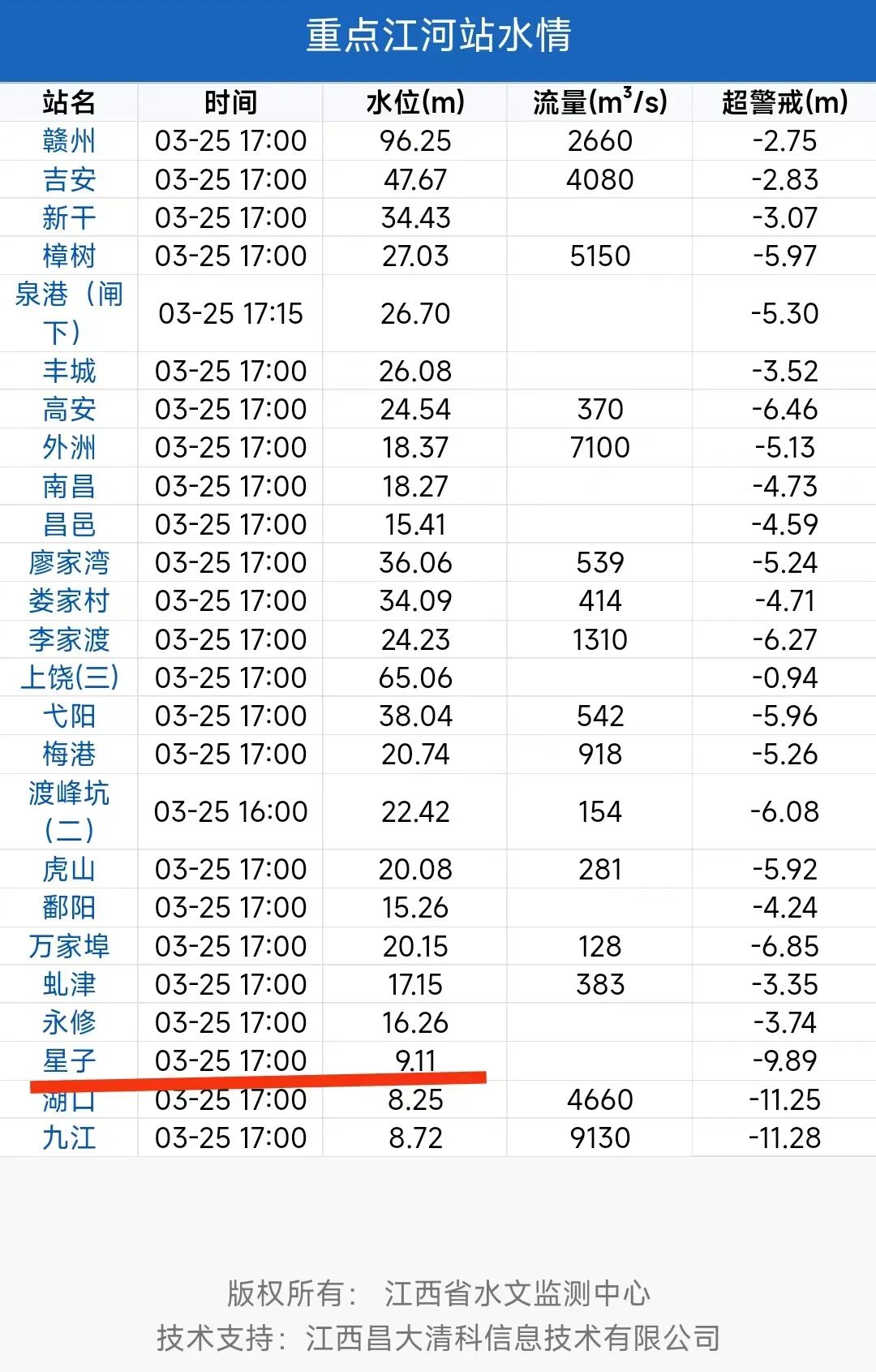 记者3月25日获悉,受持续降雨及长江干流水位上涨影响,鄱阳湖水位出现持续上涨,截至3月25日17时,鄱阳湖标志性水文站星子站水位上涨至9.11米。