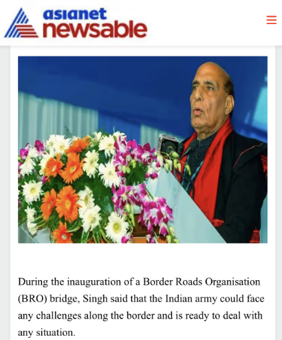 经核查,社交平台流传照片中的“印度驻缅甸大使”并不是索拉布·库马尔大使本人(Saurabh Kumar),而是印度国防部长拉杰纳特·辛格(Rajnath Singh),该图片拍摄的背景为2023年1月3日拉杰纳特·辛格在边境道路组织(Border Roads Organisation)大桥落成典礼上的讲话,并非网传说法中“印度或将对缅甸采取军事行动”、“踏平缅北”的发言。