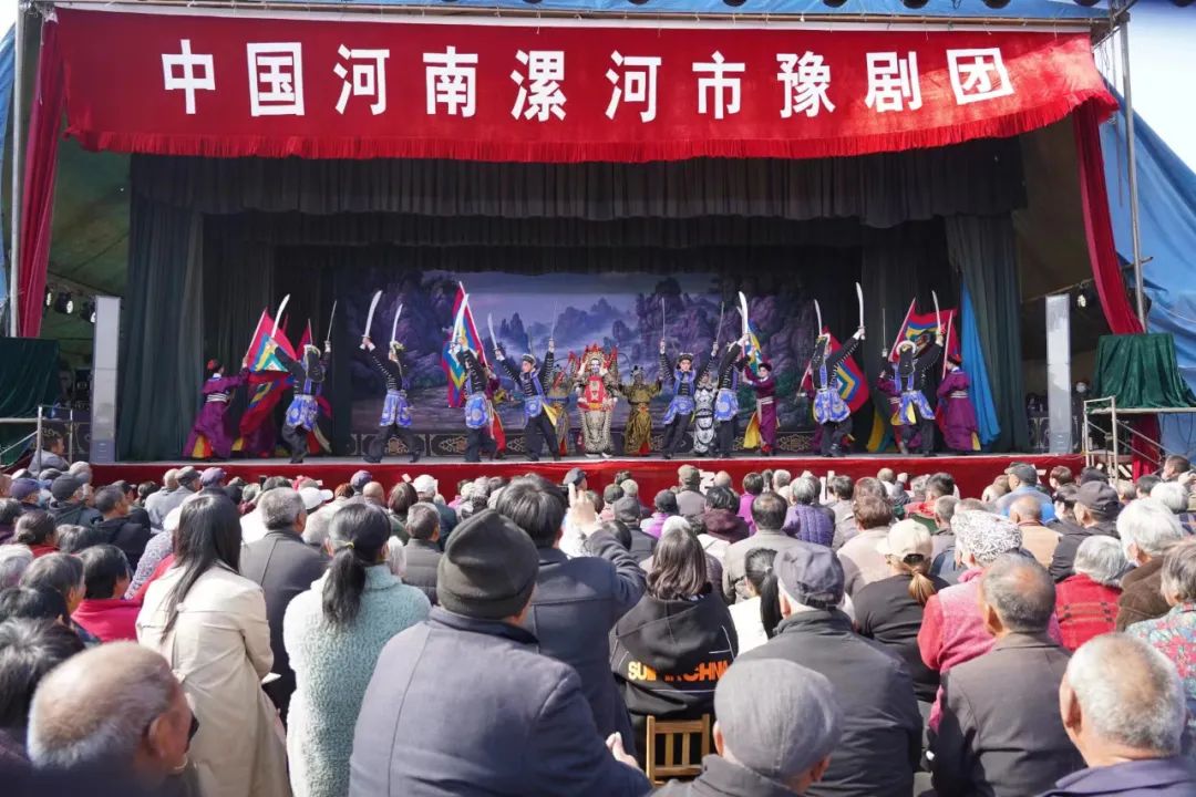 漯河市豫剧团一直以来以文武大戏闻名,宏大的场面气势,精彩的唱功和武打,深受老百姓喜爱。整场演出中,演员们声腔抑扬顿挫、表演真切动人,为村民们送上了一道丰盛的“文化大餐”,赢得阵阵热烈掌声。