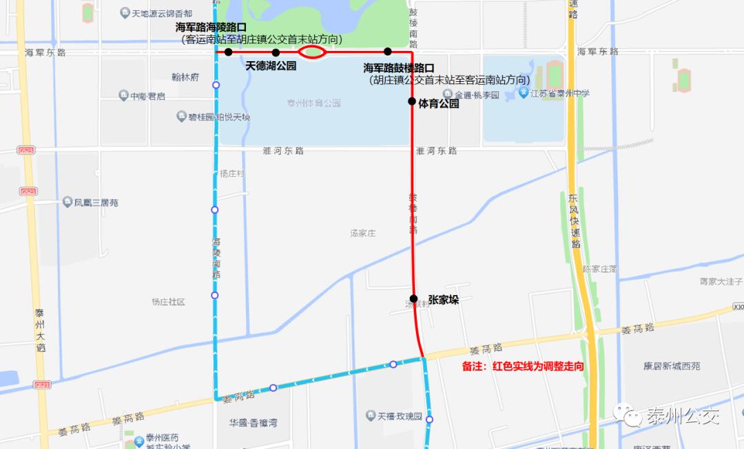 站点变化:新增经停站点:张家垛、体育公园、海军路鼓楼路口(路北站点)、天德湖公园、海军路海陵路口(路南站点);取消经停站点:天禧玫瑰园、香樟湾、杨庄南、杨庄(海陵南路)、体育公园西。