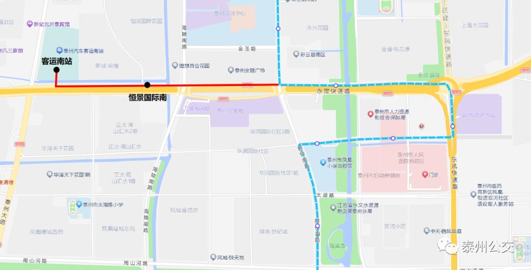站点变化:新增经停站点:恒景国际南、客运南站;取消经停站点:泰州市图书馆、市交通运输局、市政府东门、广电中心西门、莲花四号区、莲花八号区西门、三水湾、望海楼、泰州书城、鼓楼路小学、学政试院、金鹰国际、第四人民医院东、扬晖路口、海阳东路。