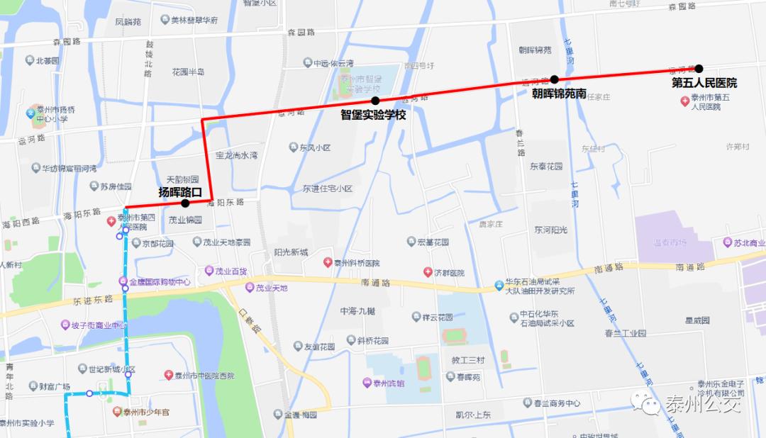 4.优化调整603路优化路线:由原603路终点站(泰州市第四人民医院)延伸,经海阳路-智堡路-运河路至泰州市第五人民医院(新终点站)。