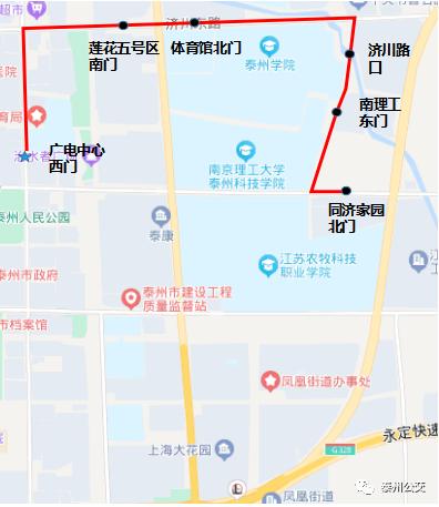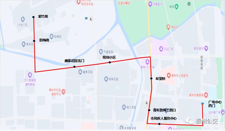 线路走向:梅兰路-青年路-泰州大道-扬子江北路-扬子江南路。