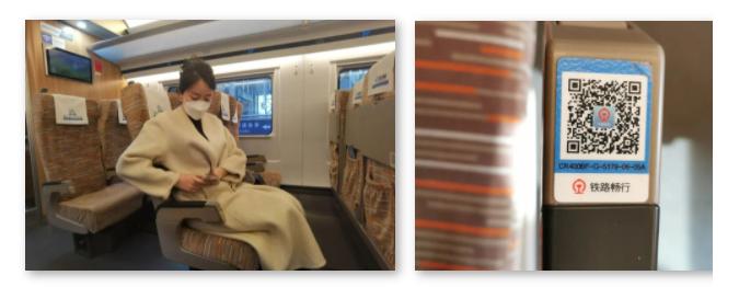 在座椅扶手上有列车畅行码