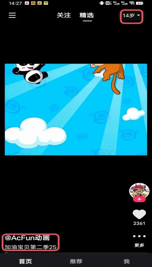比如快手,我们模拟不同年龄段的未成年人,发现平台在精选首页随机推荐的视频内容较为相似,向4岁儿童推荐的视频和向14岁学生推荐的视频竟然是同一部动画片?!