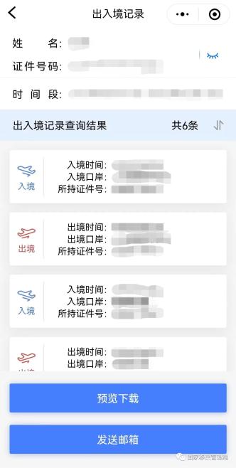 在邮箱中查看自己的出入境记录查询结果文件,该文件具有法律效力。