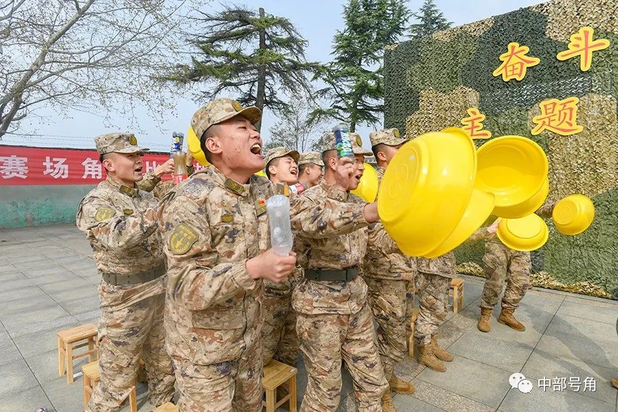 哨子、水瓶、黄脸盆……参赛官兵纷纷亮出“必杀器”,时而挥舞手臂高歌呐喊,时而击掌跺脚踏着节拍。“2号队,来一个”“1号队,来一个”你喊一声,我唱一首;我喊一声,他唱一曲,加油声和歌声此起彼伏,现场声浪滚滚,“战事”进入白热化。