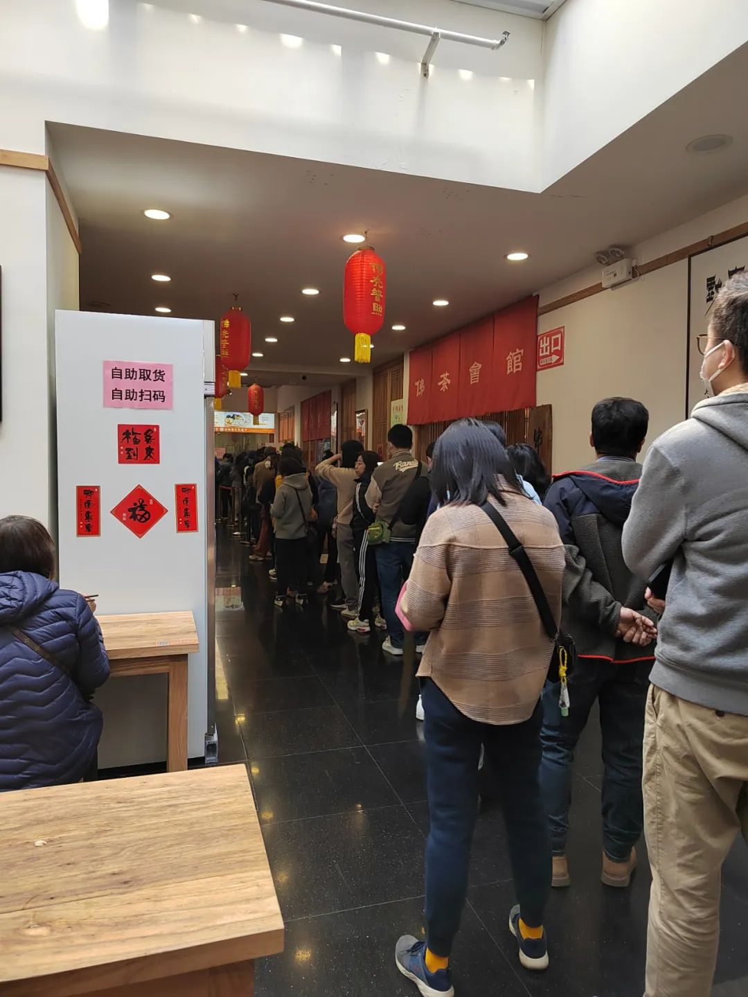 到了中午饭点现场更夸张,素斋窗口前面排了一条老长的人龙