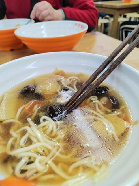 我点了份罗汉面,不是因为名字好听,单纯比较便宜,不过还蛮好吃一碗热乎乎汤面配上应季的腌笃笋,坐我对面的小女孩边吃边跟自己奶奶说面条好好吃,说下次还要来